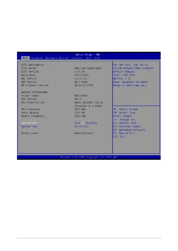 When you enter the BIOS Setup program, the Main menu screen appears.
