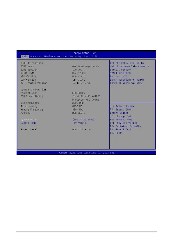 When you enter the BIOS Setup program, the Main menu screen appears.