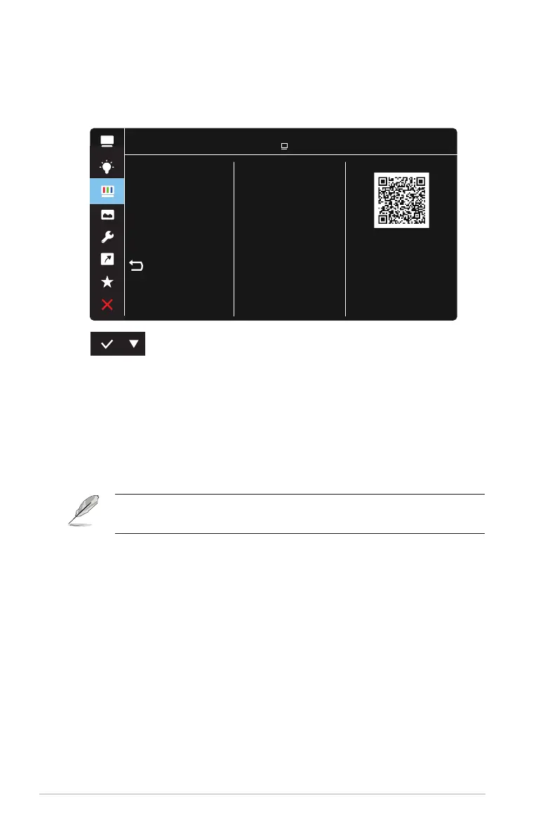 • Color Temp.: Contains three preset color modes (Cool, Normal, Warm)