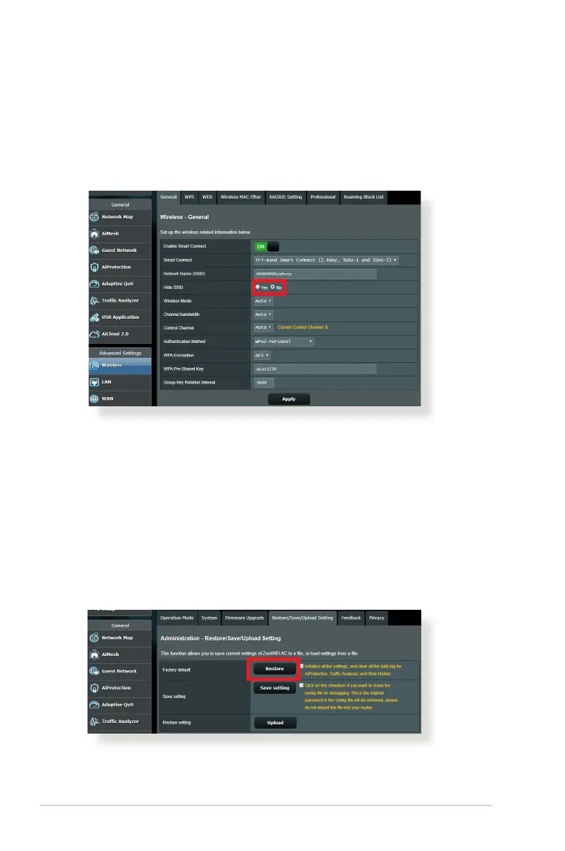 (ไร้สาย) > General (ทั่วไป), เลือก No (ไม่) บน Hide