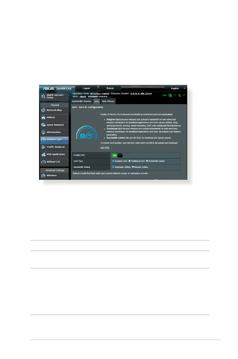 2. คลิก เพื่อเปิดทำางาน QoS กรอกข้อมูลในฟิลด์แบนด์