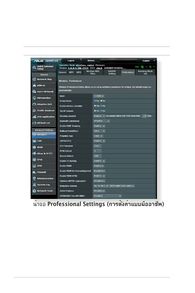 หน้าจอ Professional (มืออาชีพ) ให้ตัวเลือกการกำาหนดค่าขั้นสูง