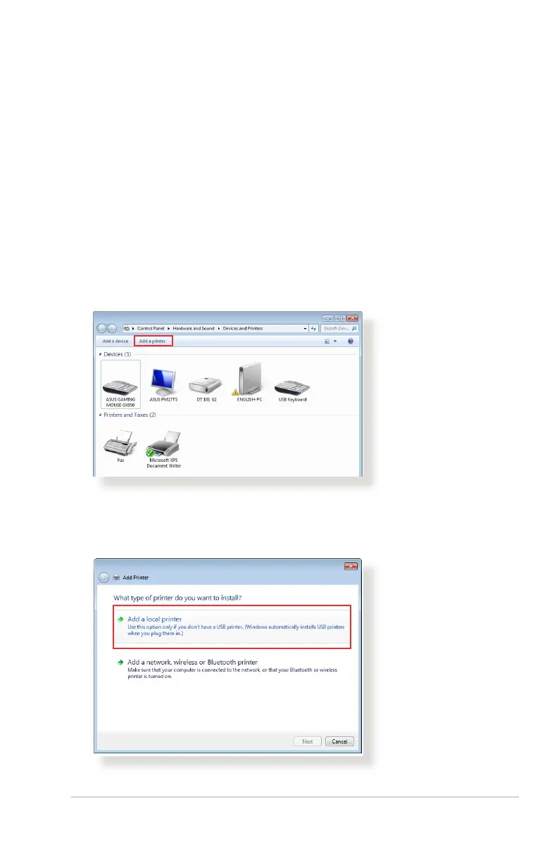 2. เลือก Add a local printer (เพิ่มเครื่องพิมพ์ในเครื่อง)