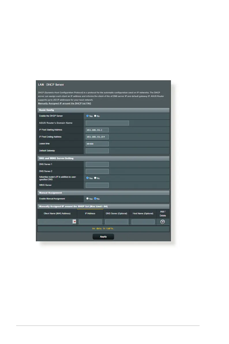2. In the Enable the DHCP Server eld, tick Yes.