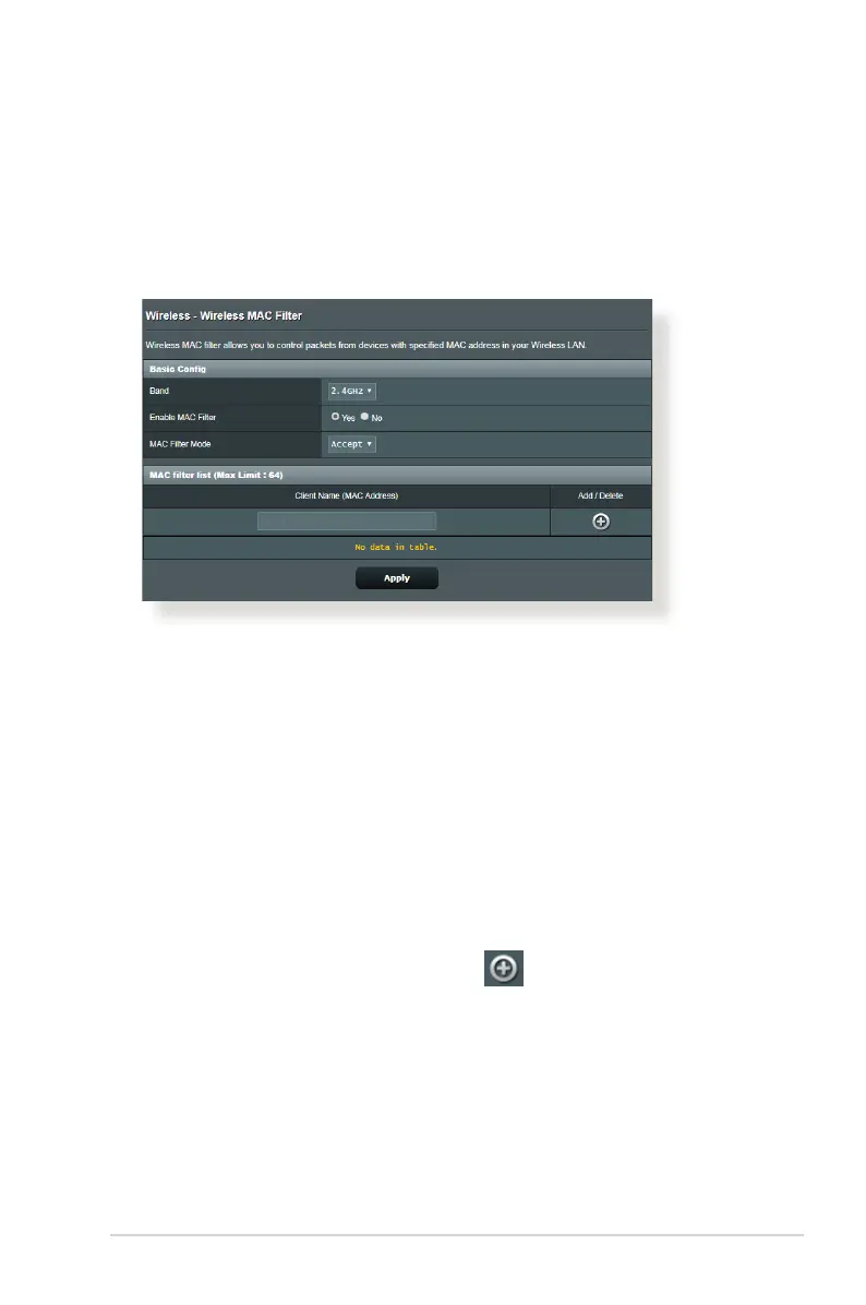 4. On the MAC lter list, click the Add button and key in the