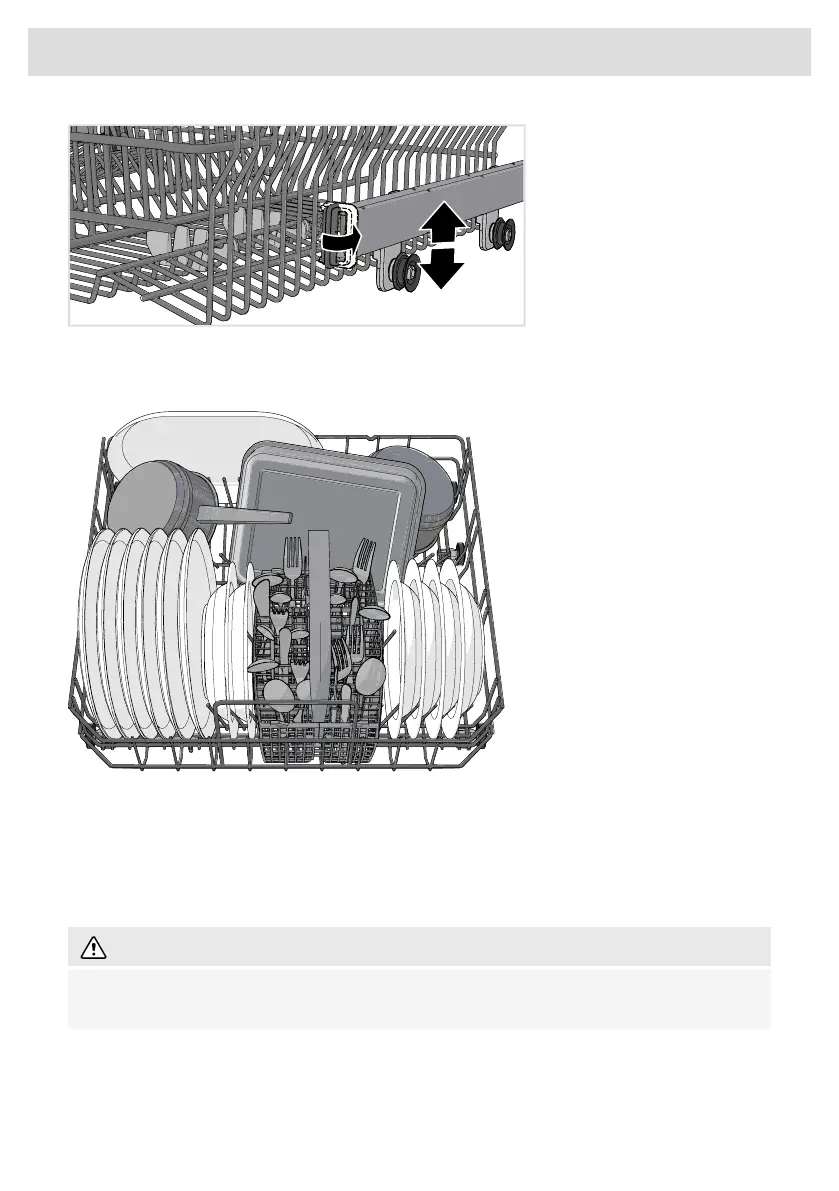 Plaats borden, dessertborden, schalen, pannen en bestek (in de messenkorf) in de onderkorf.