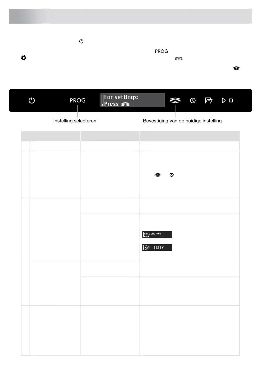 Om de vaatwassers Instellingenmenu te openen, drukt u op totdat op het display