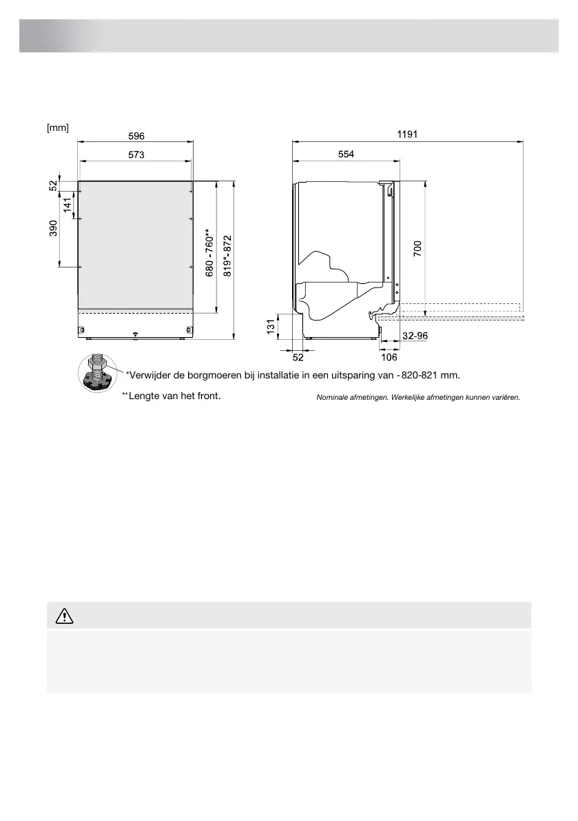 *Verwijder de borgmoeren bij installatie in een uitsparing van -820-821 mm.