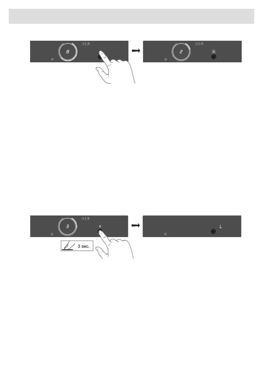 • De indicatie 'L' verschijnt op de display en de bedieningselementen van de kookplaat worden