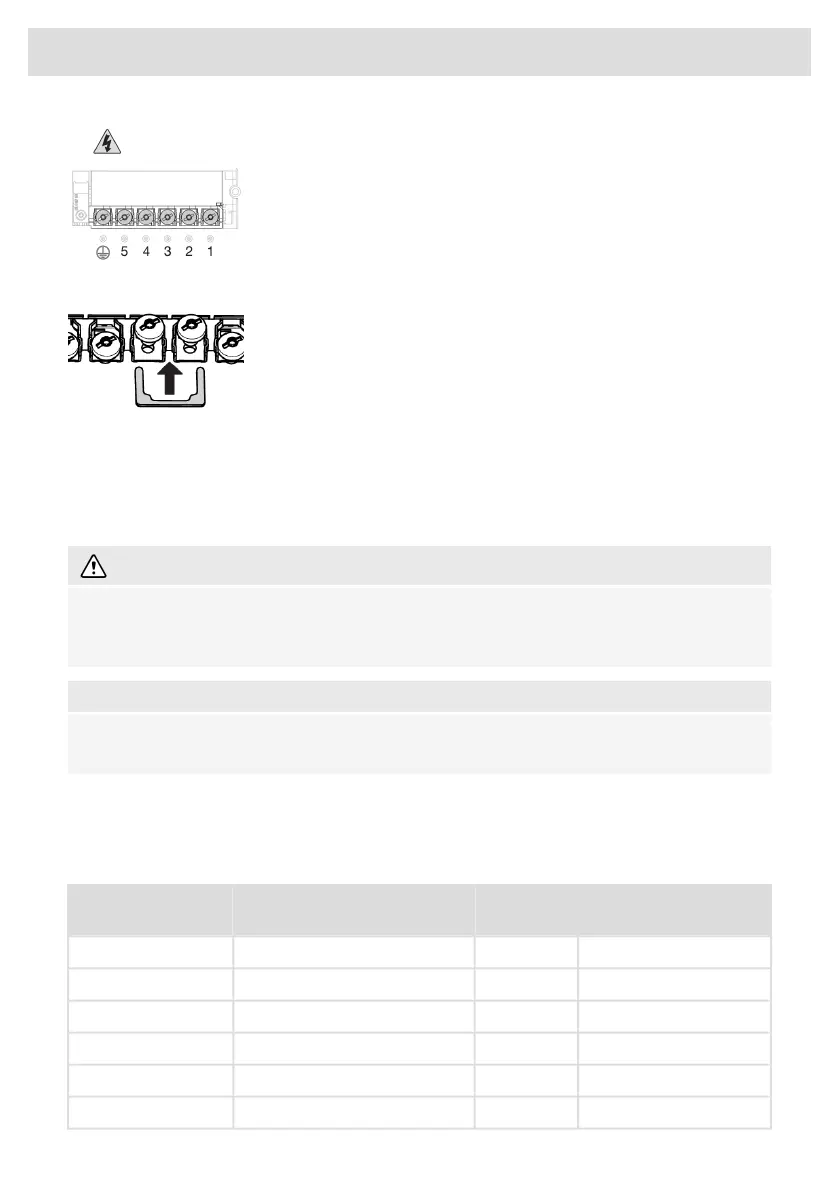 De doorsnede van de voedingskabel moet minstens 1,5 mm² bedragen voor de volgende instellingen