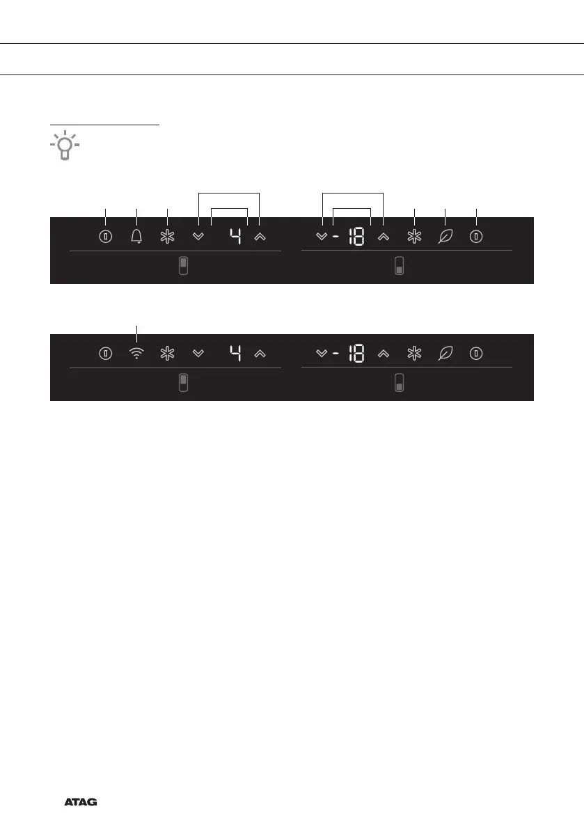 G. Weergave ingestelde temperatuur (vriescompartiment)