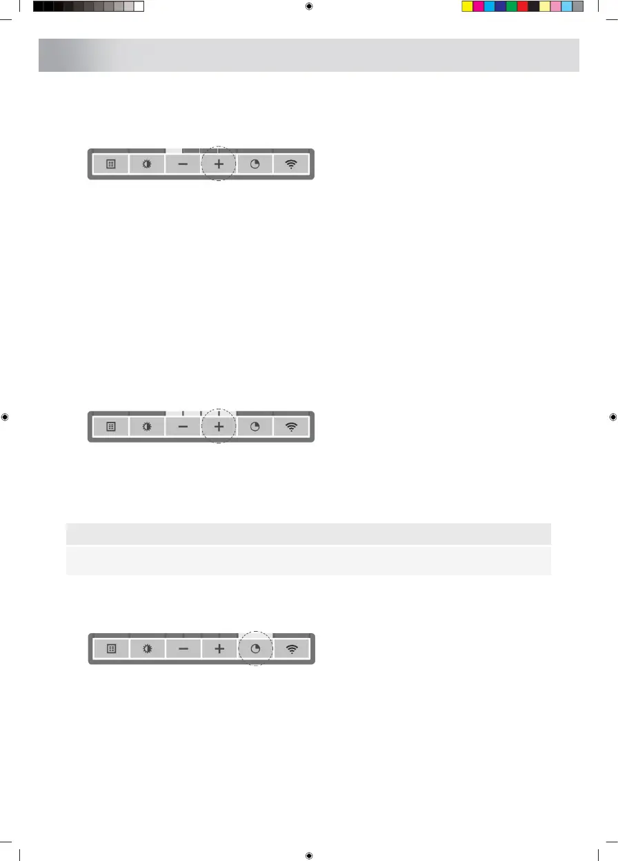 5. Houd de – (min) knop tenminste 1 seconde ingedrukt om de afzuigkap uit te schakelen.