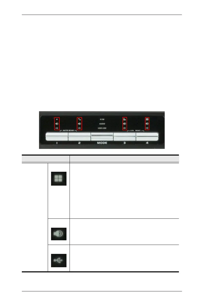 Press KVM Port Selection pushbuttons 1 and 2 for 2 seconds to start