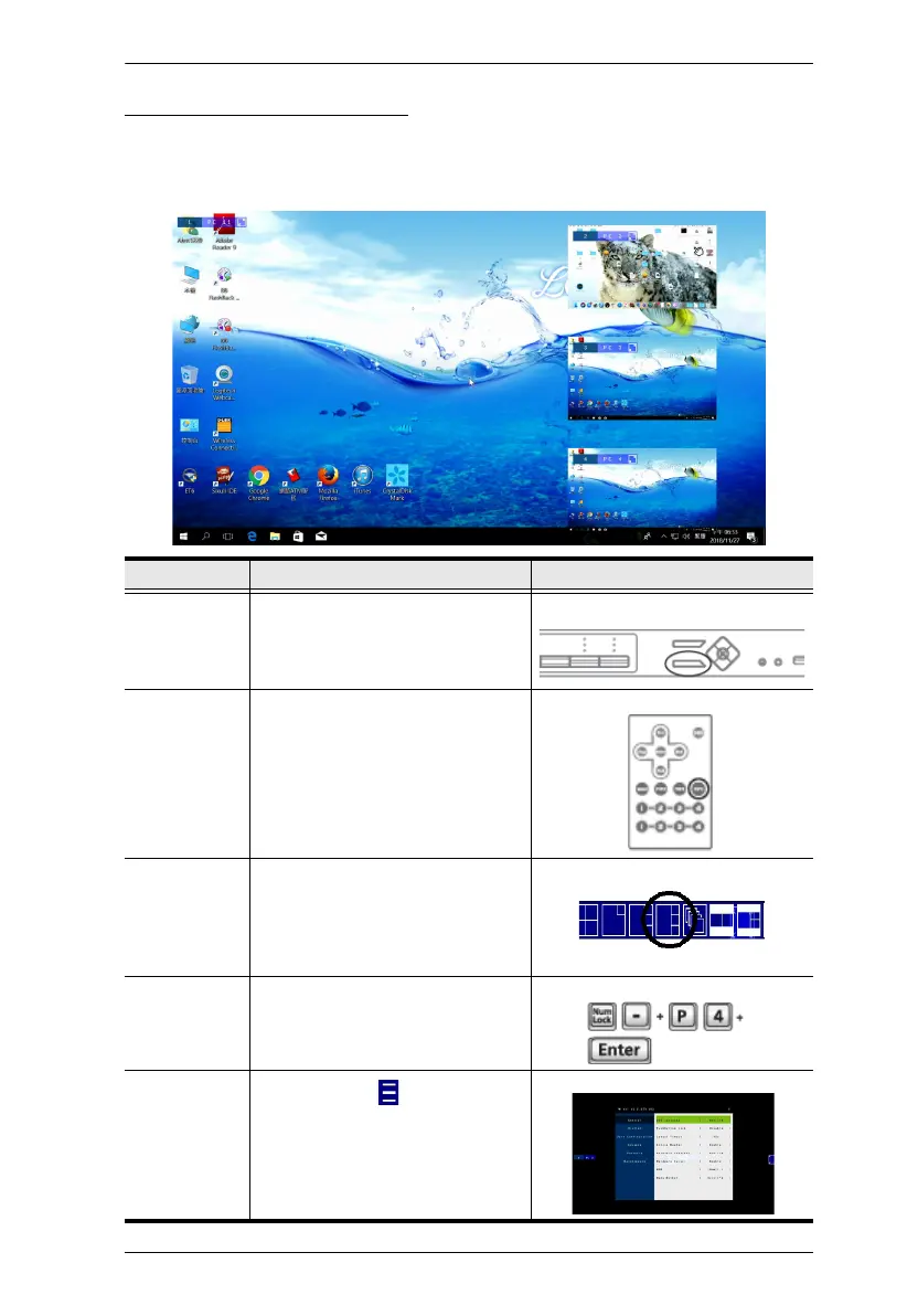 A quad PiP view has 4 computers on the monitor with one computer as the