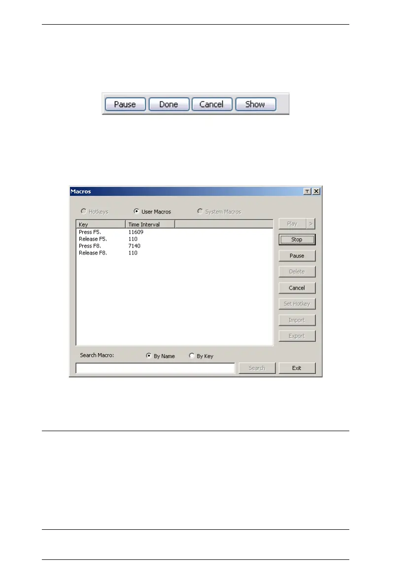 Clicking Show brings up a dialog box that lists each keystroke that you