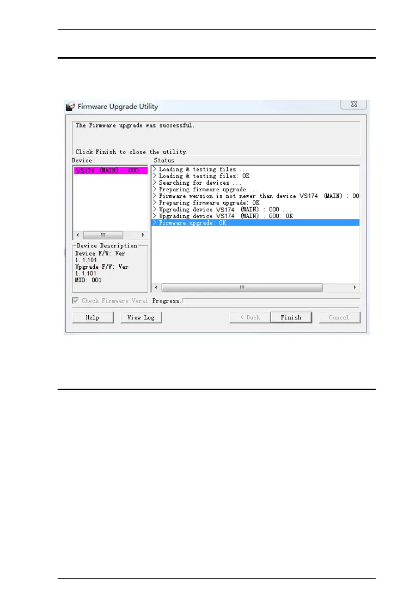 After the upgrade has completed, all port LEDs will stop flashing and a screen