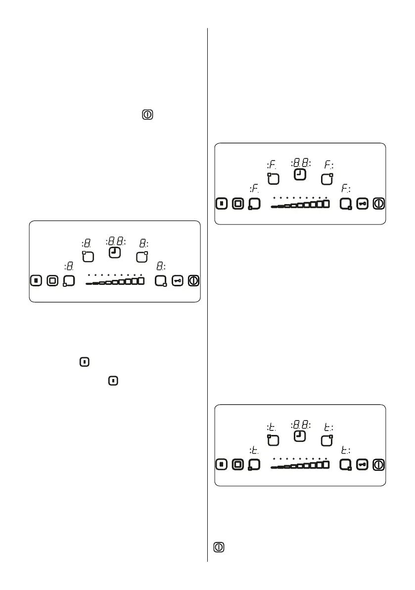 eingeschalteten Kochzonen auf die Stopp/