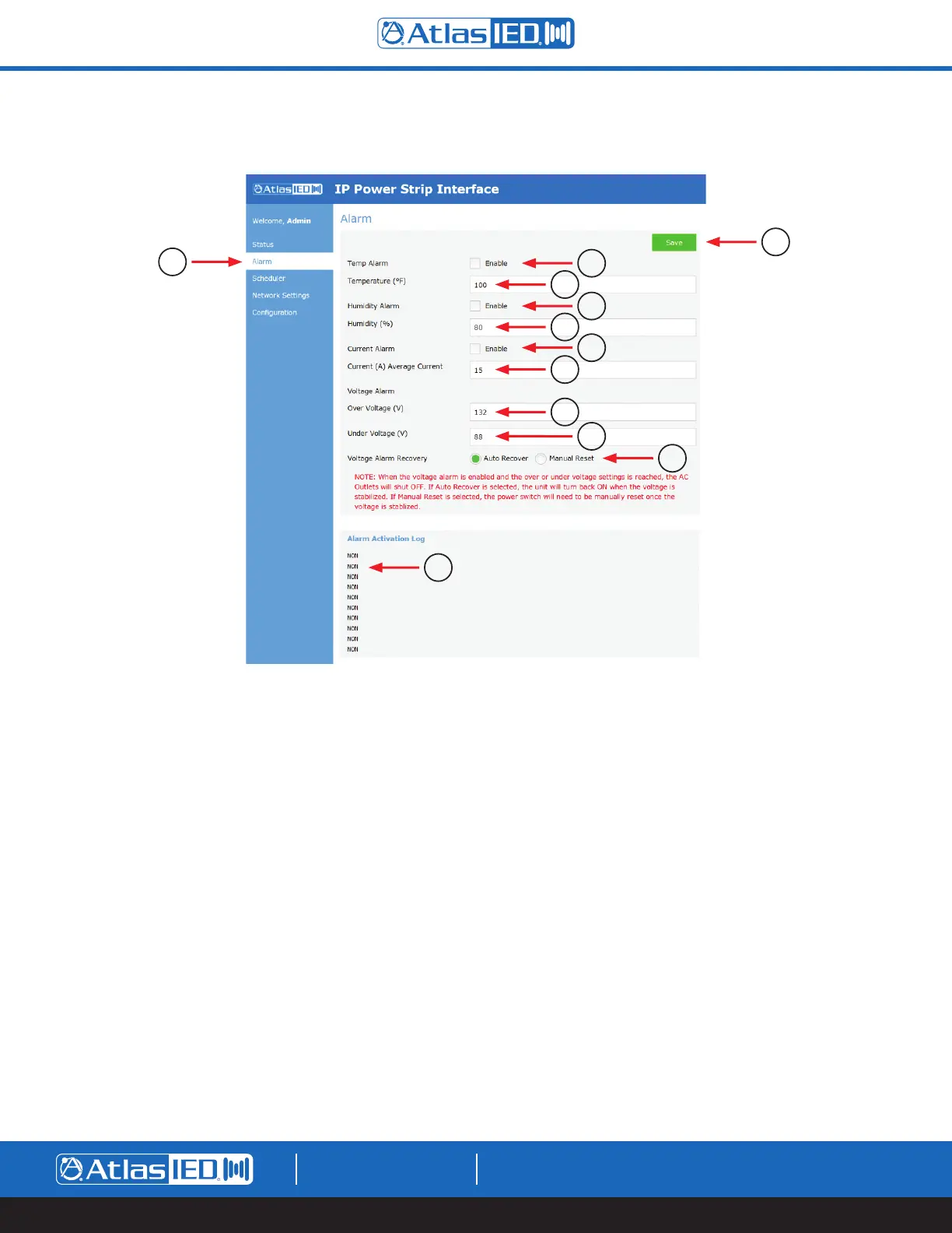 • The fault reason, day and time will be recorded in the Alarm Activation log section located at the bottom of the Alarm page.