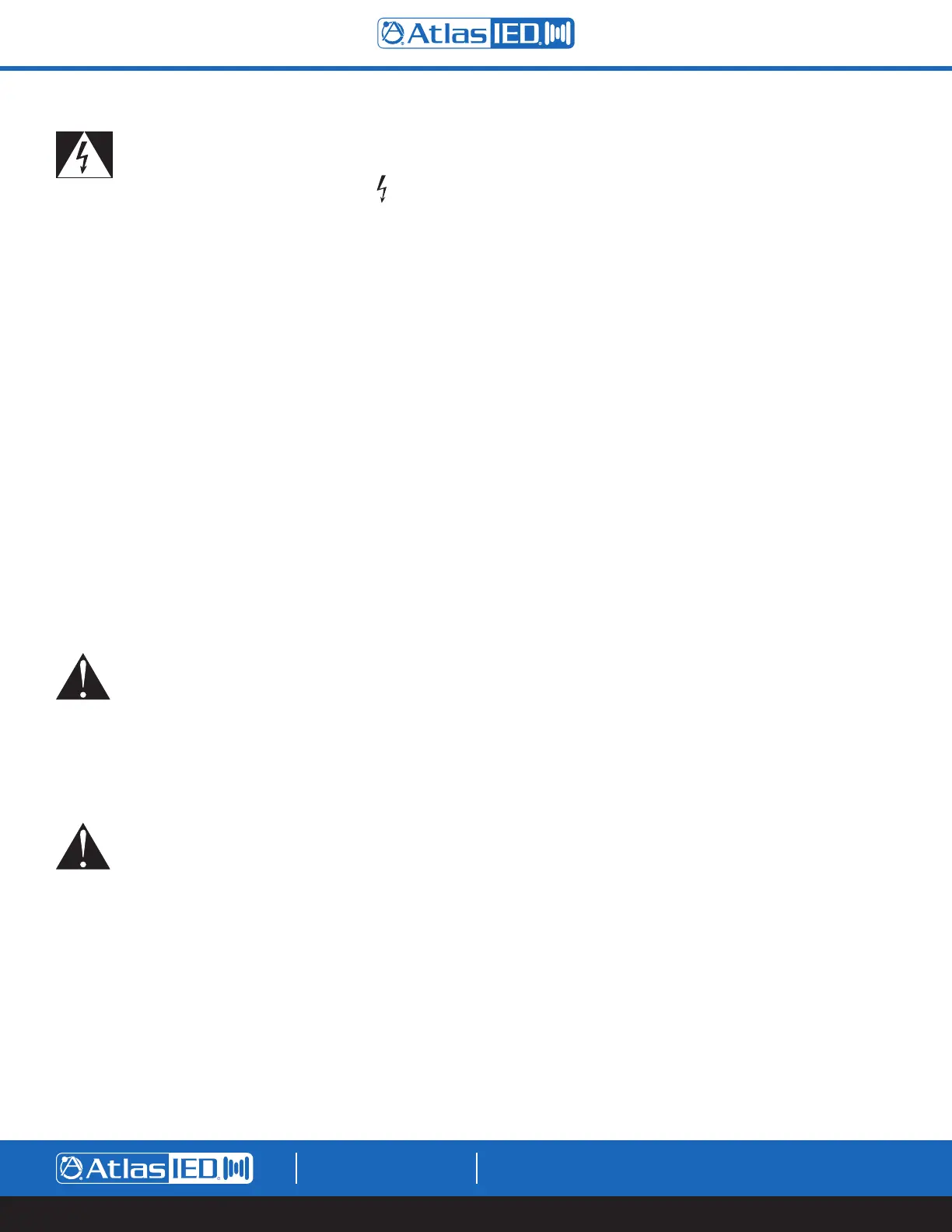 contact AtlasIED. Do not to attempt to continue operation with the product as this may cause fire or electric shock: