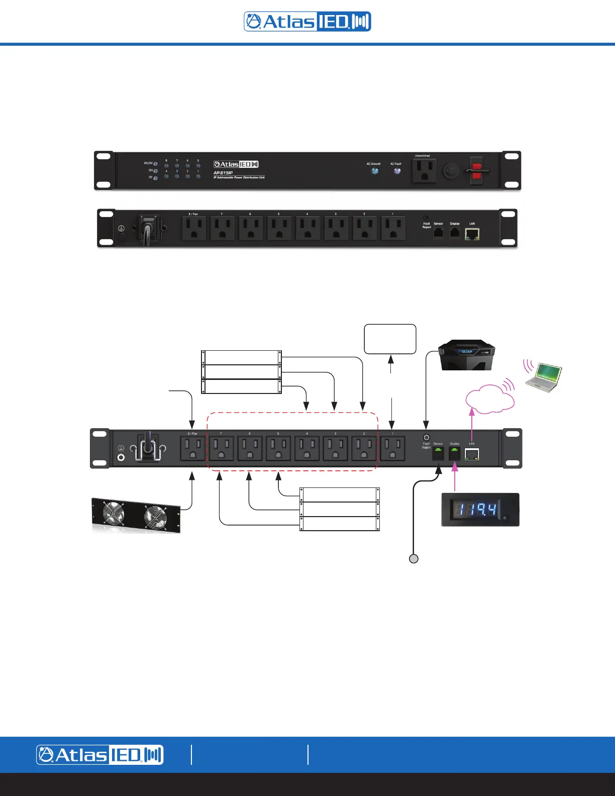The AP-S15IP is a 19" rack mount power distribution system with eight programable rear outlets and 1 front panel unswitched outlet.