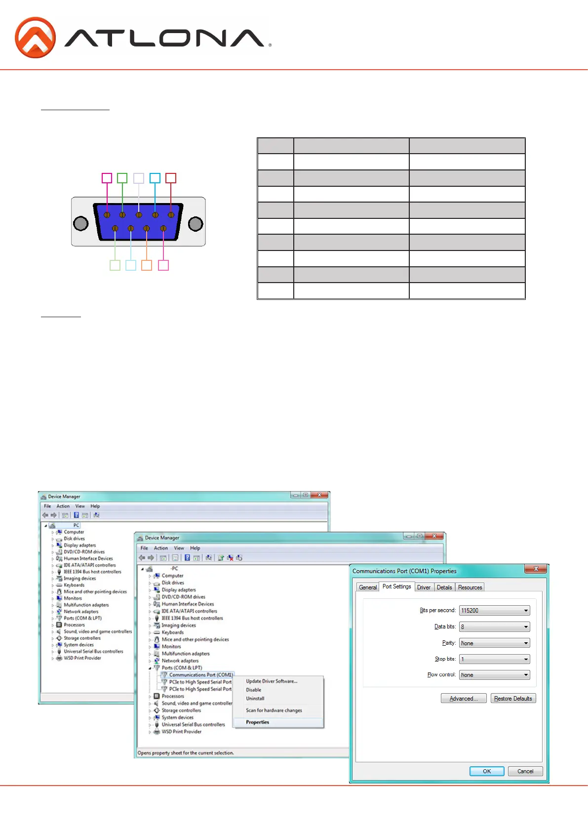 1. Connect the matrix to a PC using a 9pin to 9pin cable
