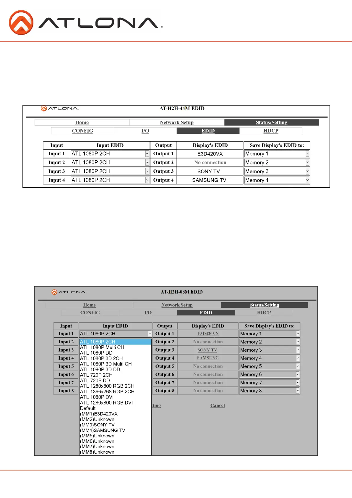 selection for internal, default, and saved EDIDs (see pages 9-11 for EDID information).