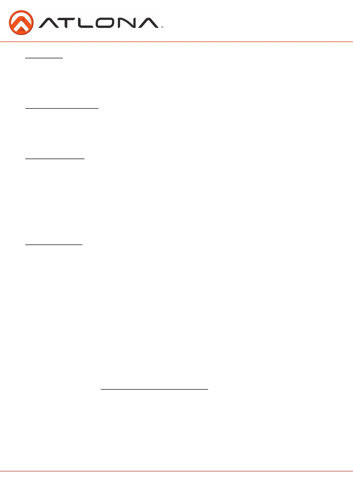 conjunction with. Atlona, at its sole discretion, reserves the right not to extend its warranty offering in instances arising