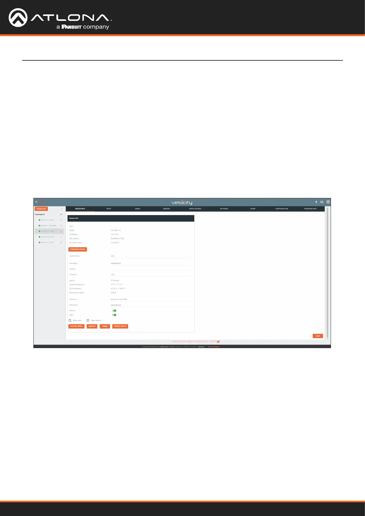 The illustration below shows the DEVICE INFO screen for an AT-OMNI-112 encoder.