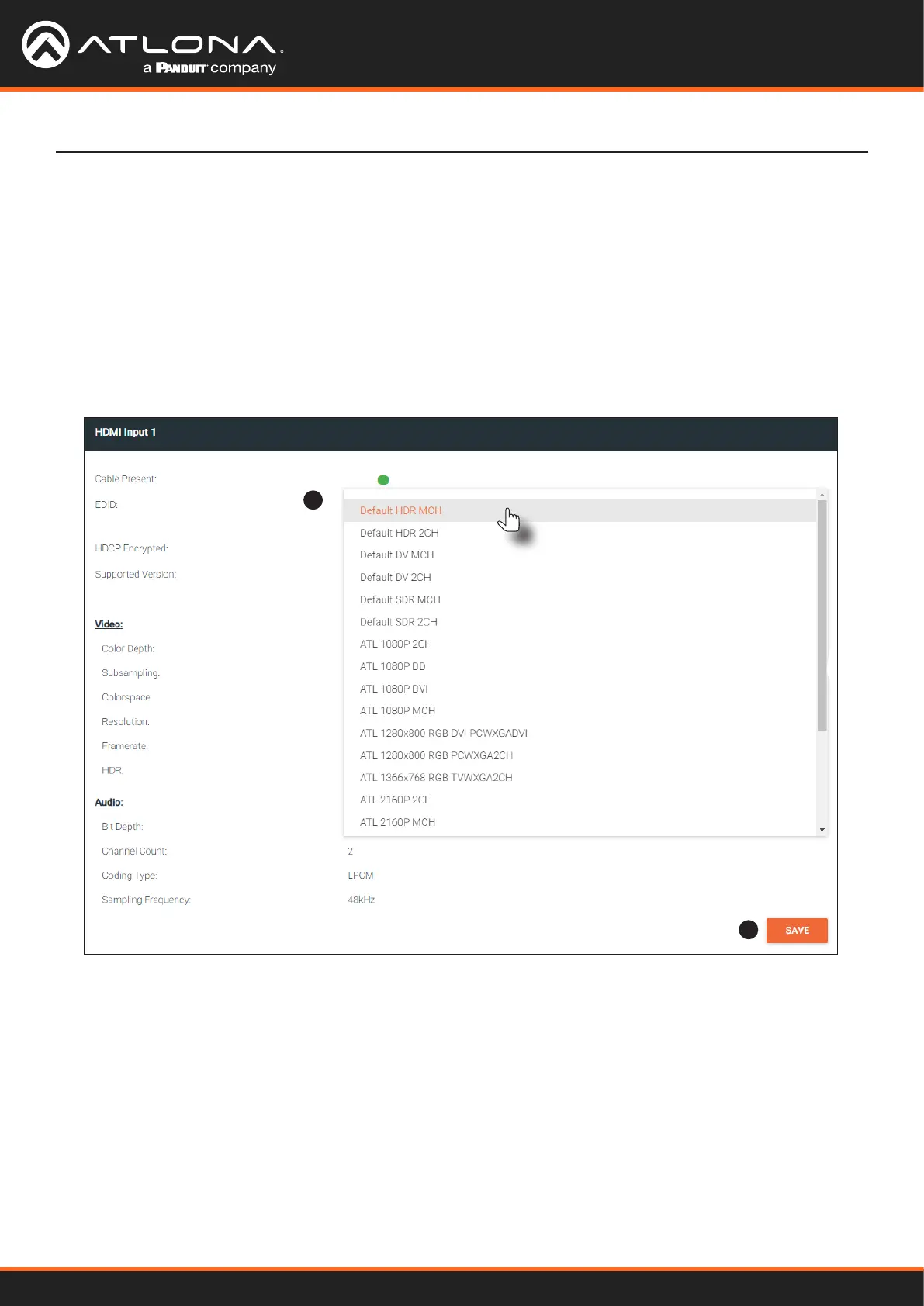 2. Click the SAVE button within the HDMI Input window group to commit changes.