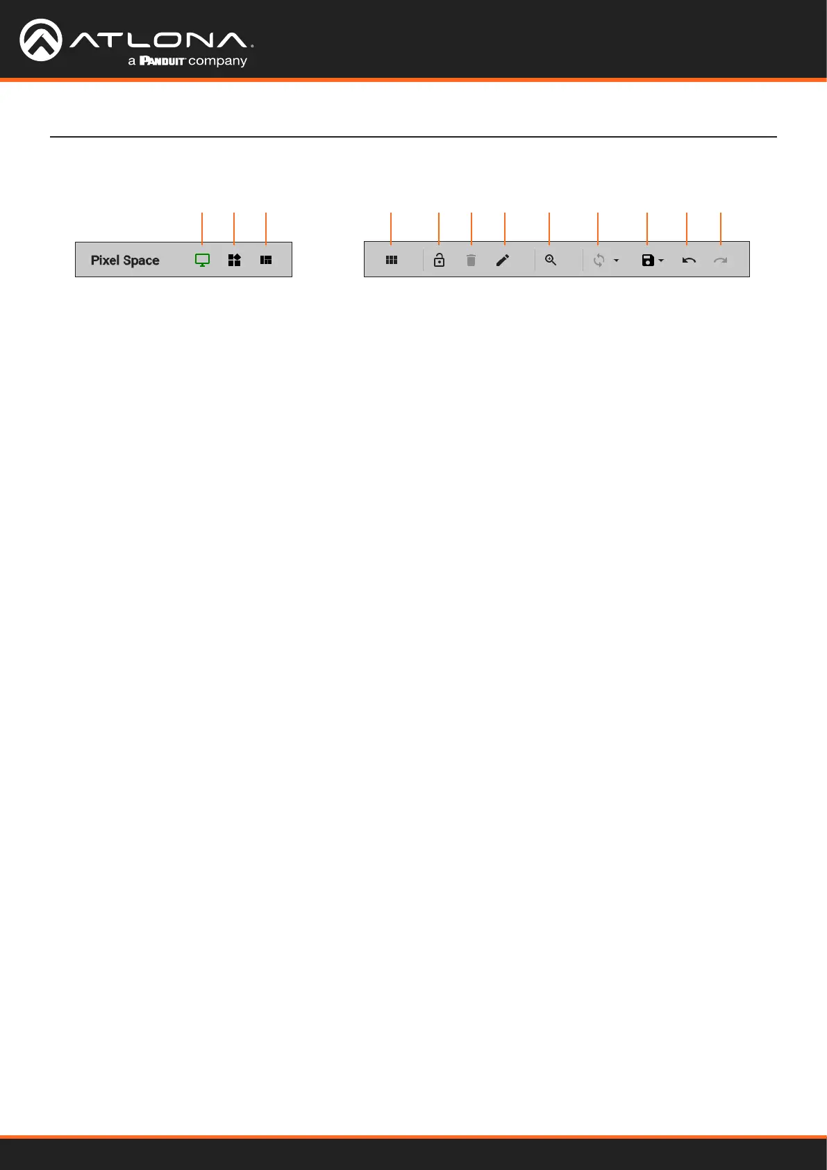 Before continuing, refer to the Pixel Space tool bar at the top of the screen. The following identies each icon: