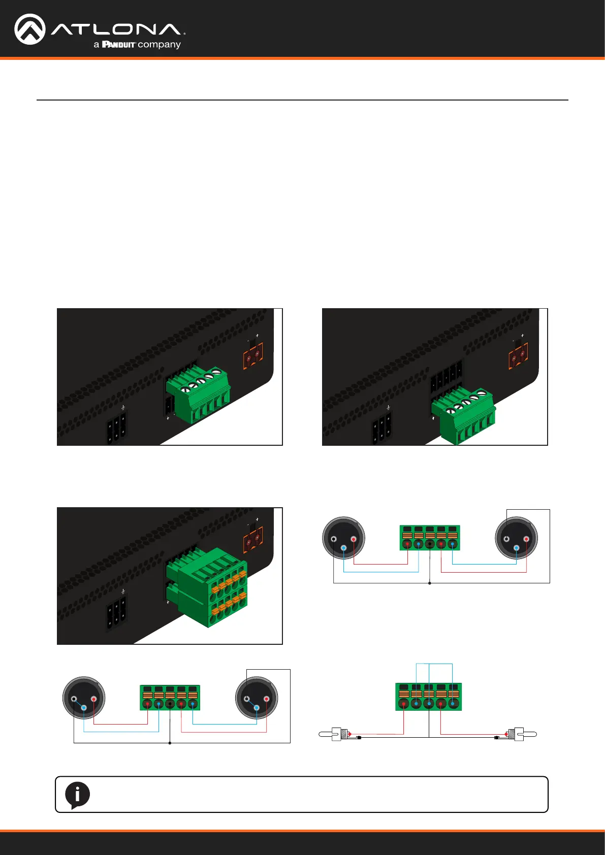 Use the included dual ve-pin Phoenix blocks. Note that each product comes with dierent connector blocks.