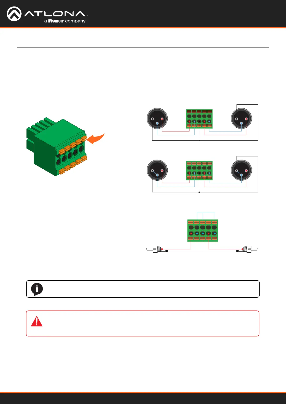 exposed wire. Release the orange tab to lock the wire in place. Balanced or unbalanced audio can be used.