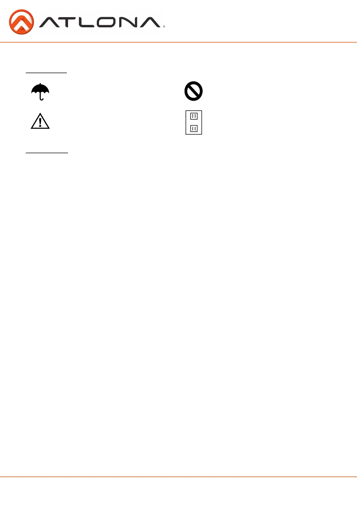 Use only accessories recommended by Atlona to avoid fire, shock, or other hazards.