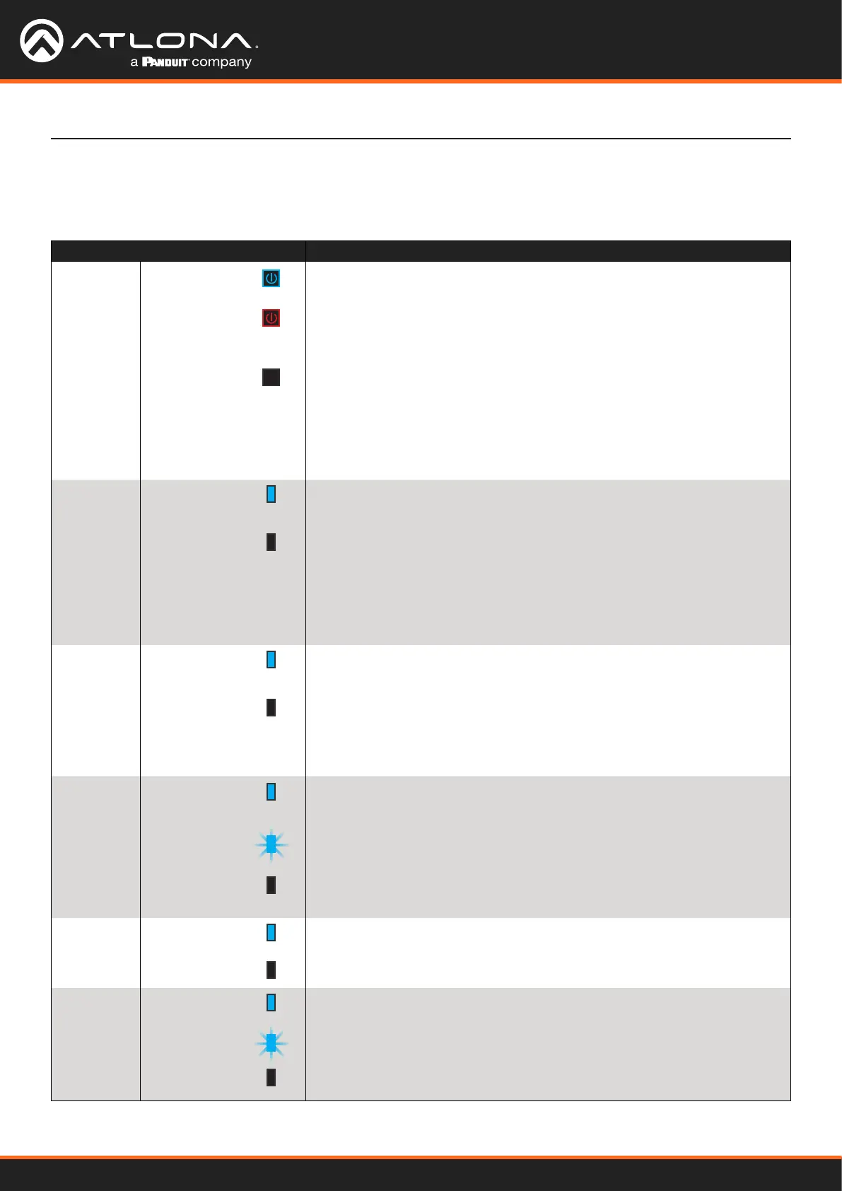 LOCK Blue Front-panel buttons on the AT-UHD-CAT-2 are locked. Refer to the API or