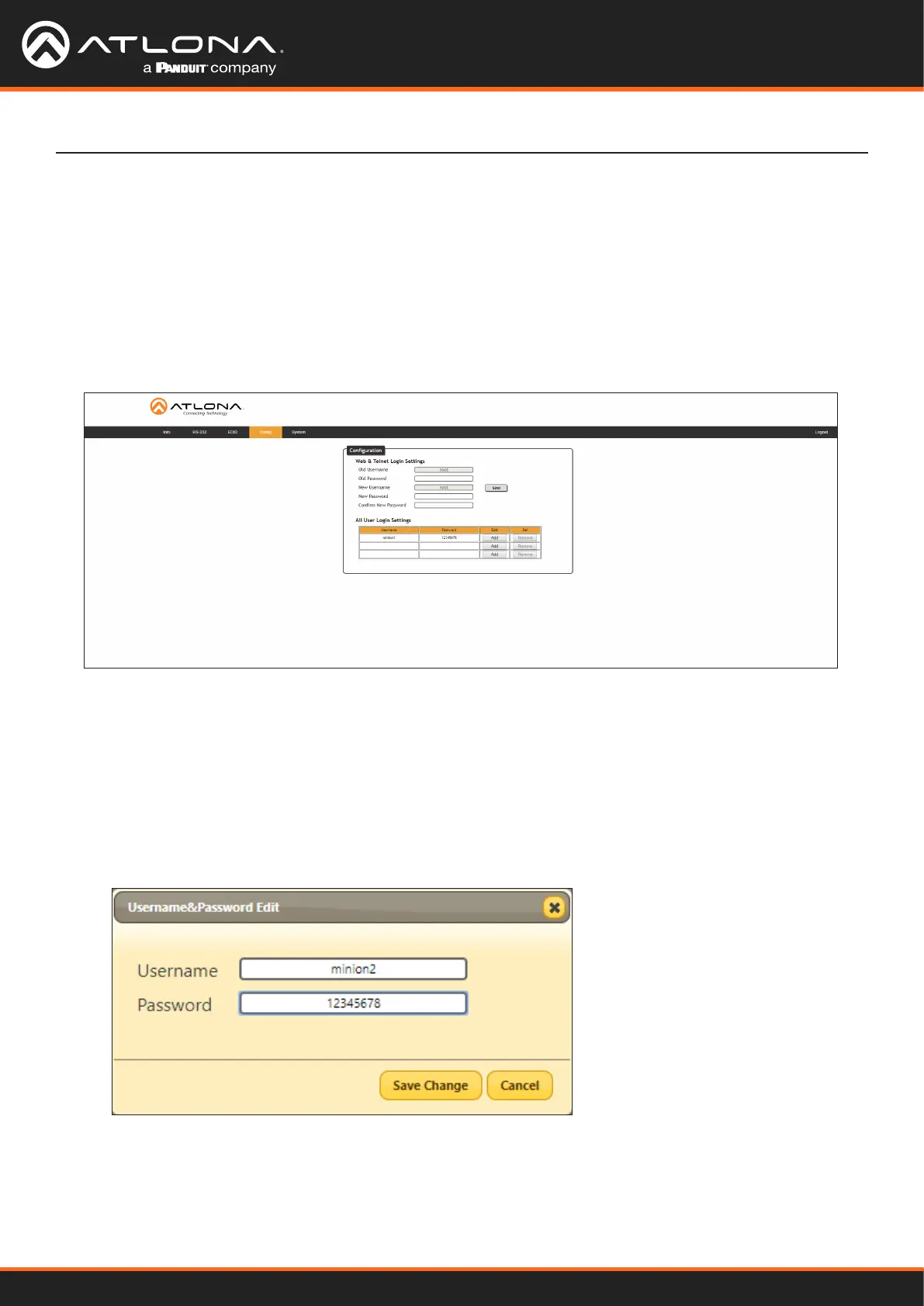 d. Click the Save Change button to commit changes or click the Cancel button to return to the Cong page