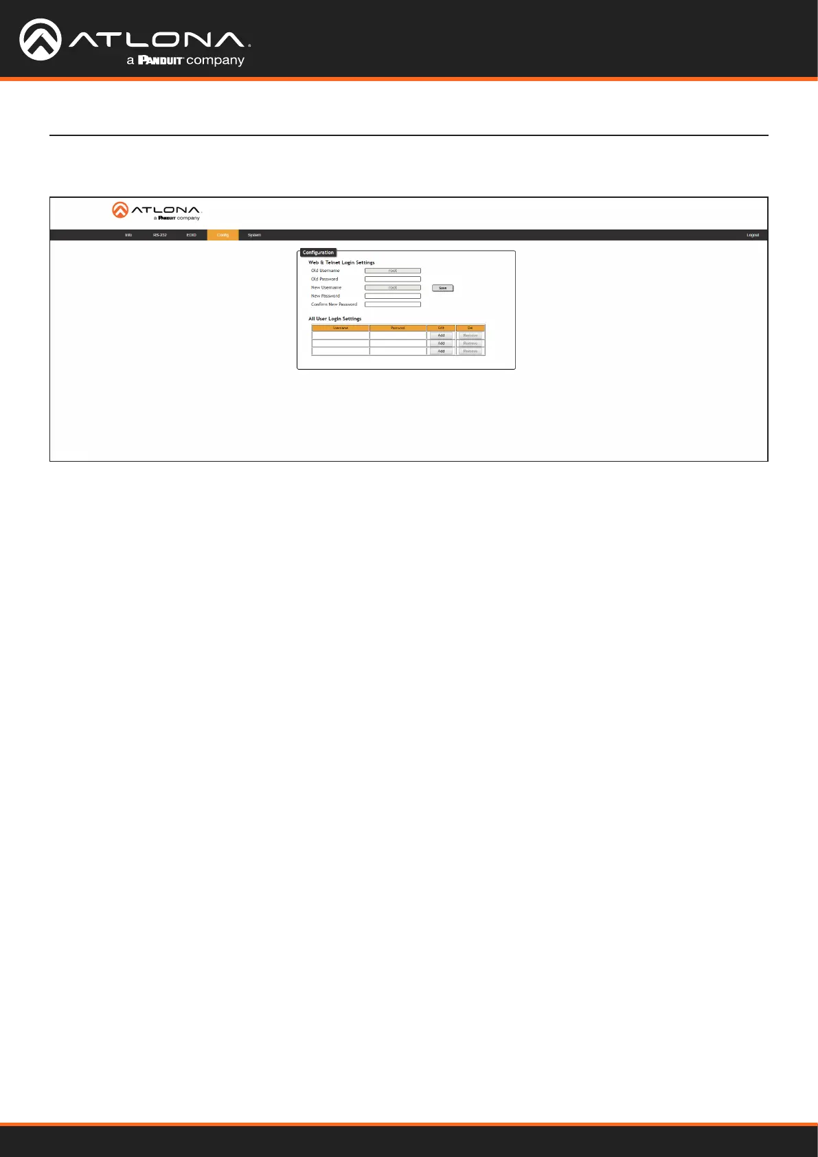 Enter the current password for the “root” username in this eld. The default password is “Atlona”.