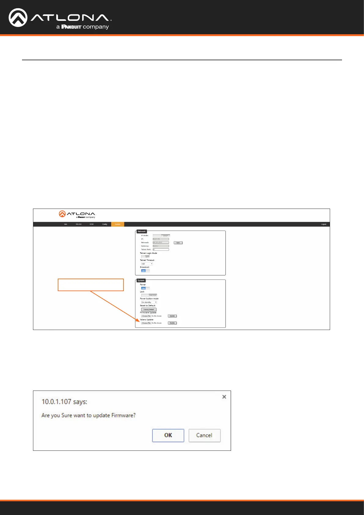 Updating the MCU rmware can be completed using either the USB interface or the web server. Atlona recommends