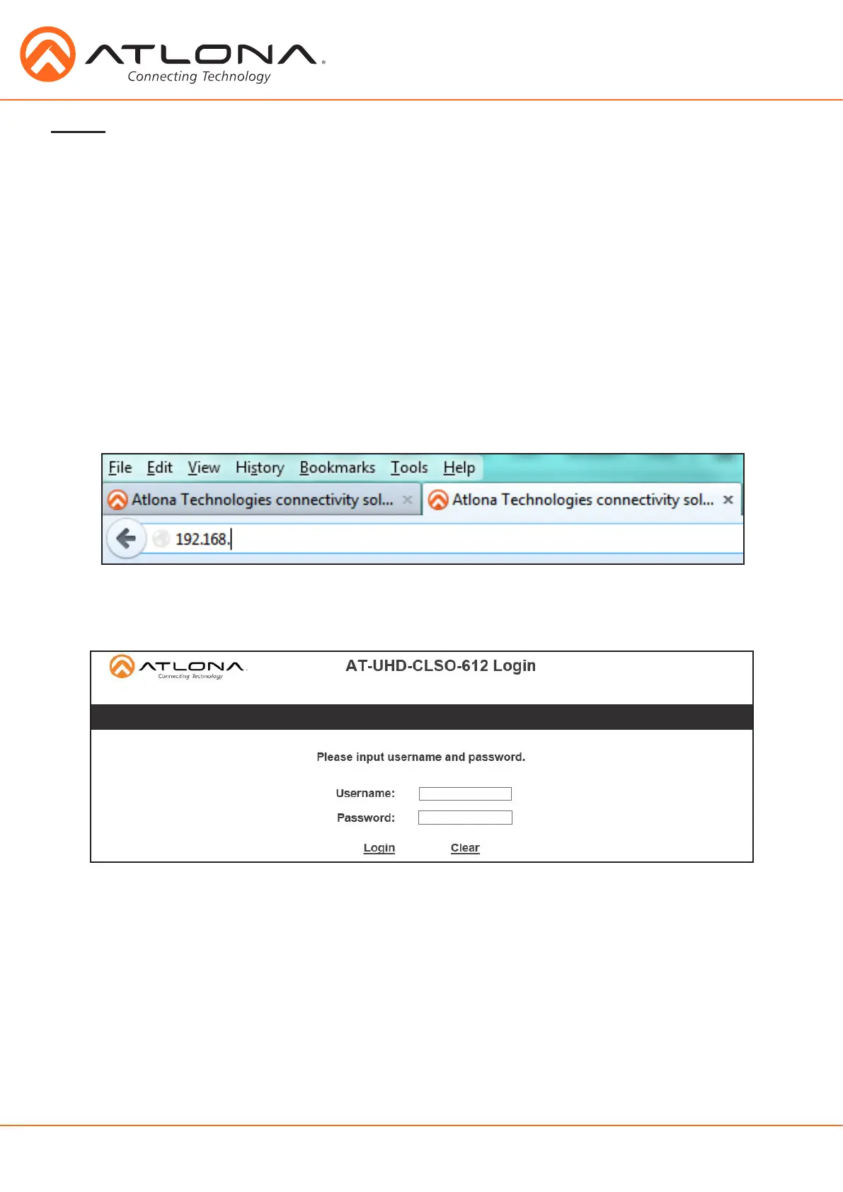 To begin, connect the LAN port of the CLSO-612 to your network. Type the IP address of the CLSO-
