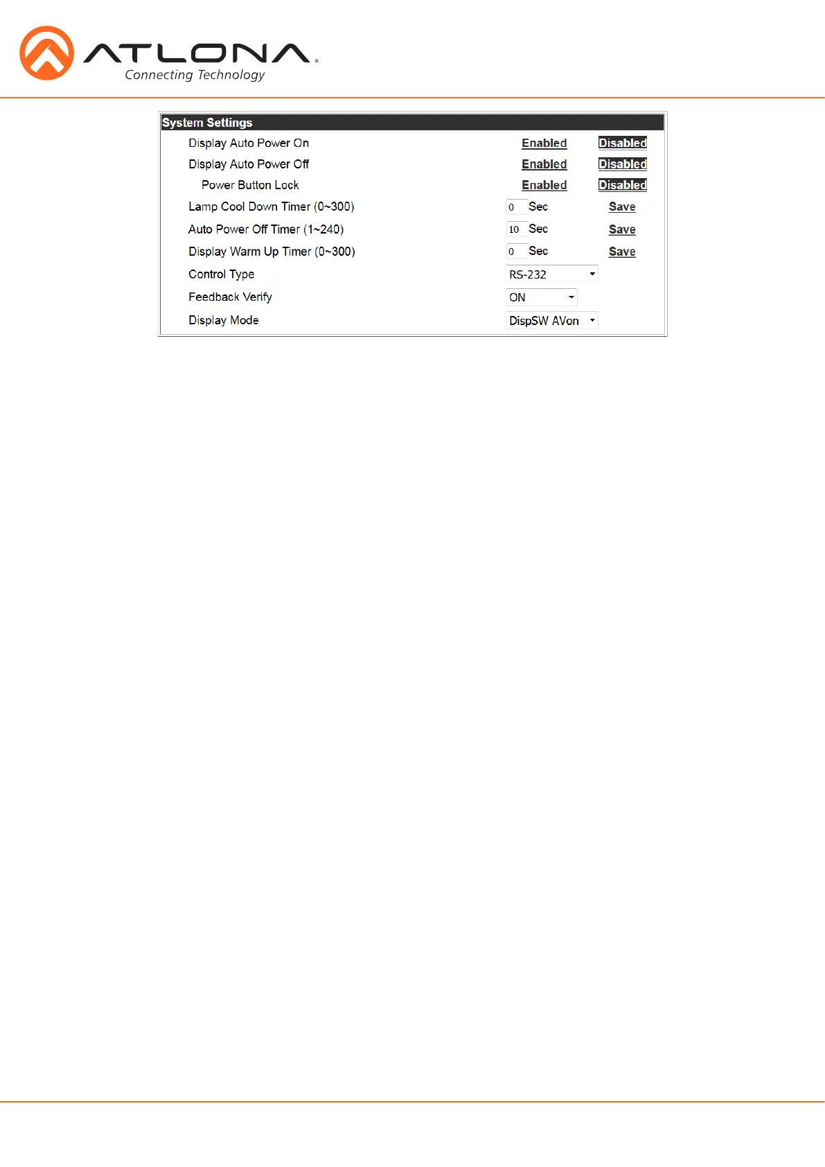 Display Auto Power Off - When enabled, the unit will send a command to the display to turn off
