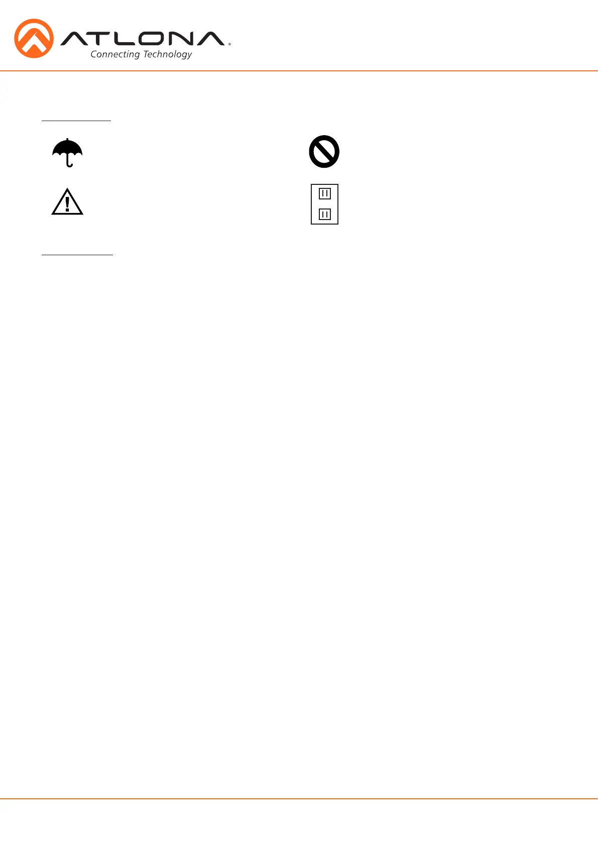 Use only accessories recommended by Atlona to avoid fire, shock, or other hazards.