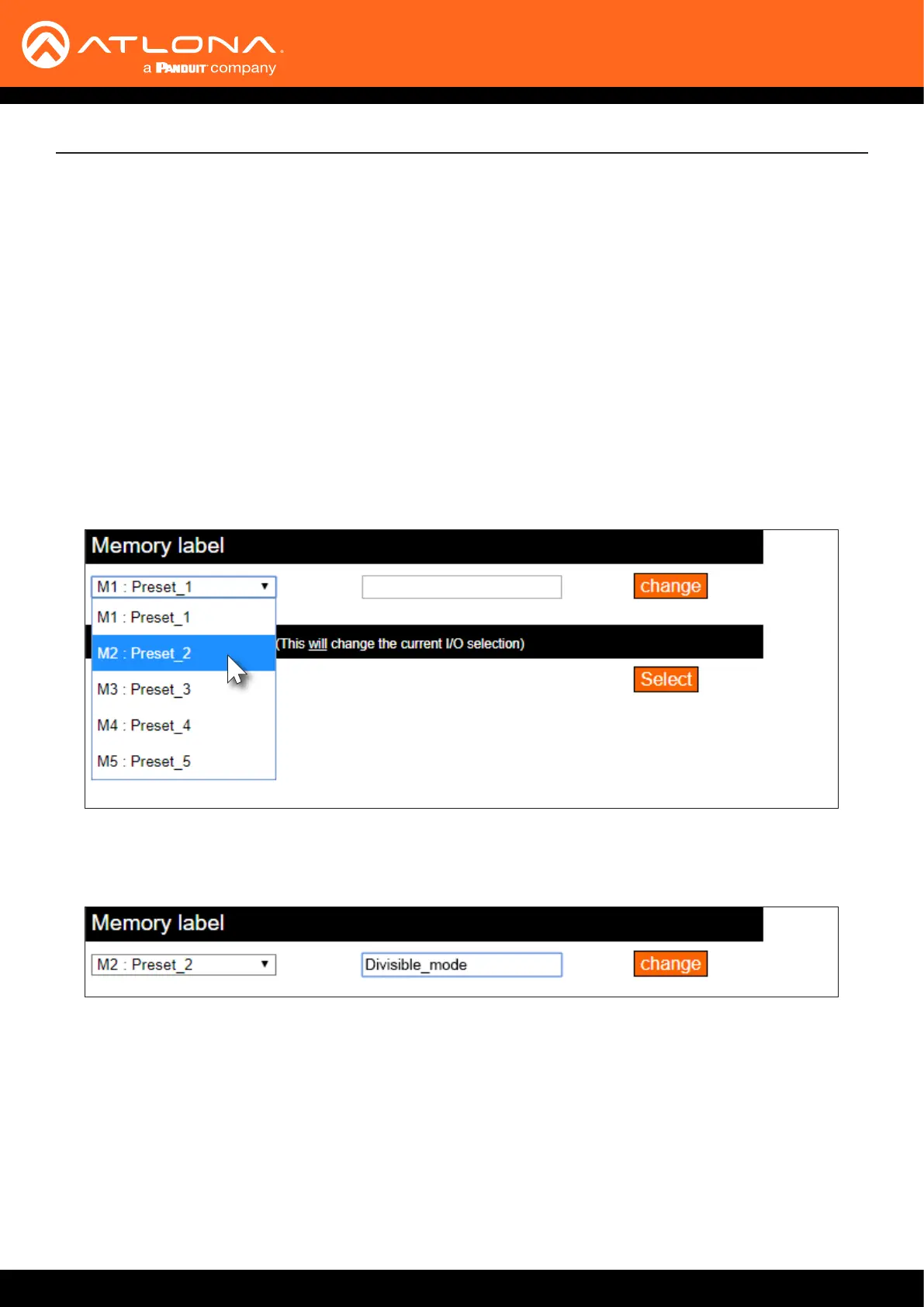 4. Enter the name of the preset in the Memory label text eld, as shown in the example below.