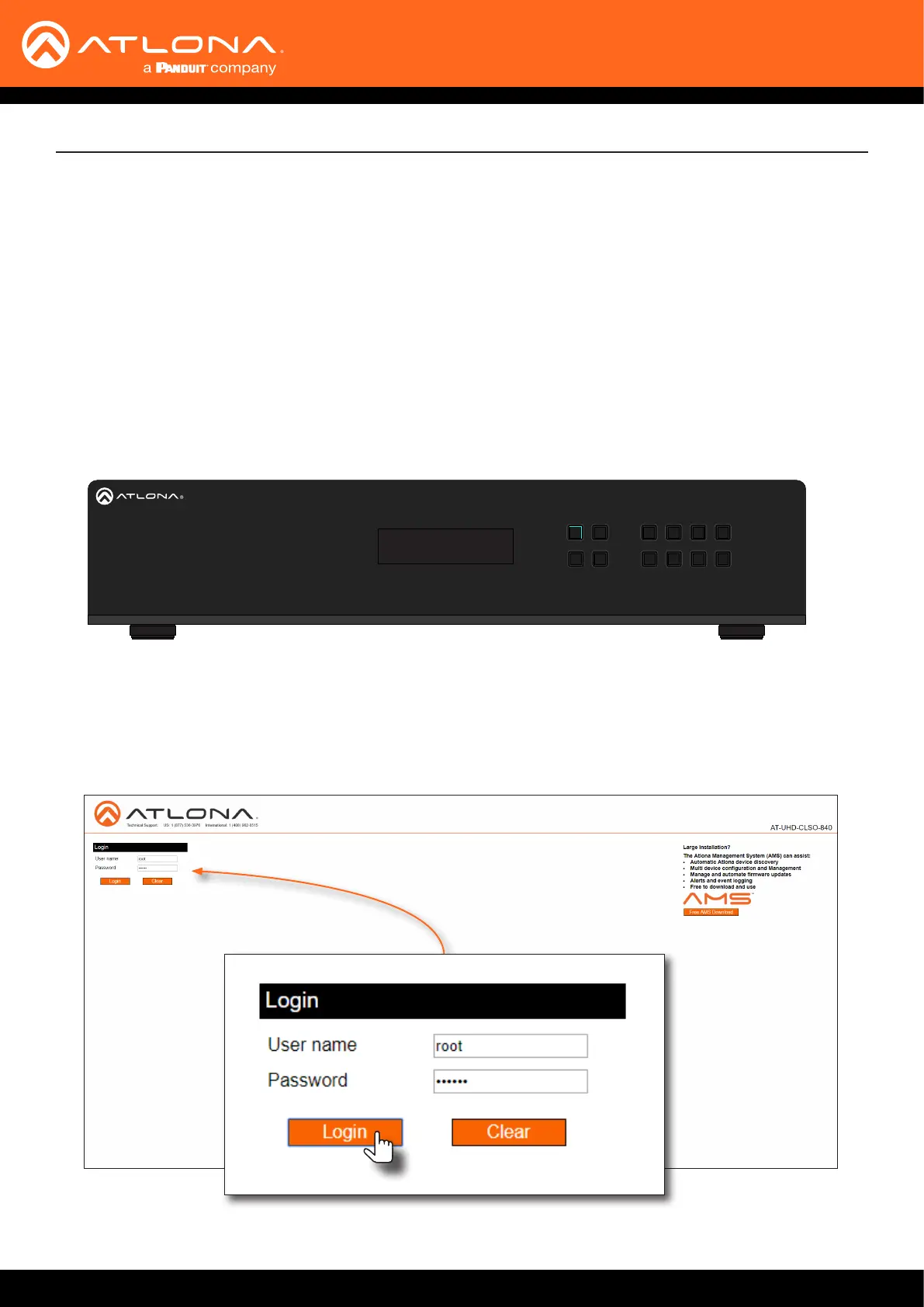 4. Type Atlona in the Password eld. This is the default password. The password eld is case-sensitive. When the