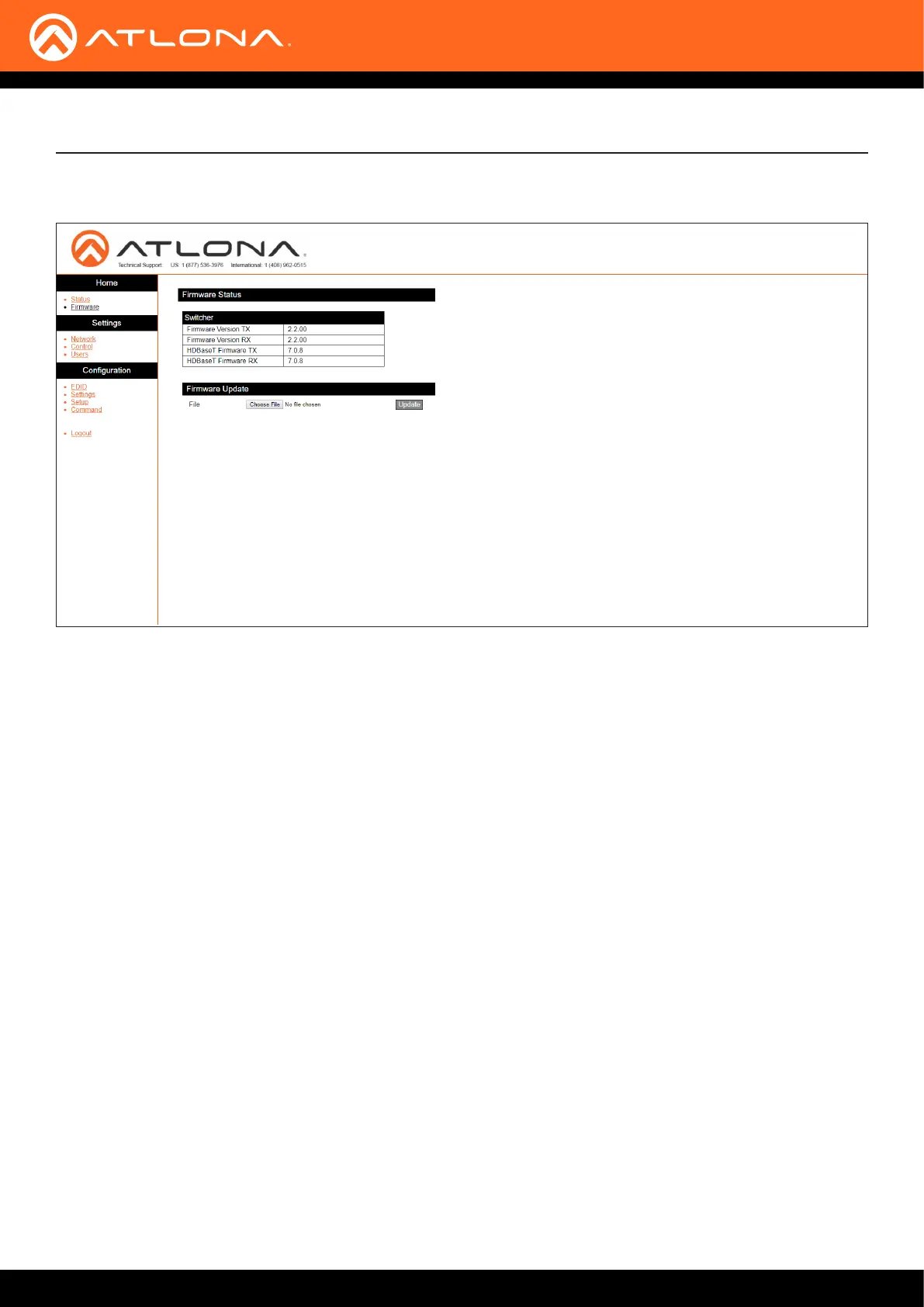 Click this button to select the rmware le. Click the Upload button to begin the update procedure. Refer to