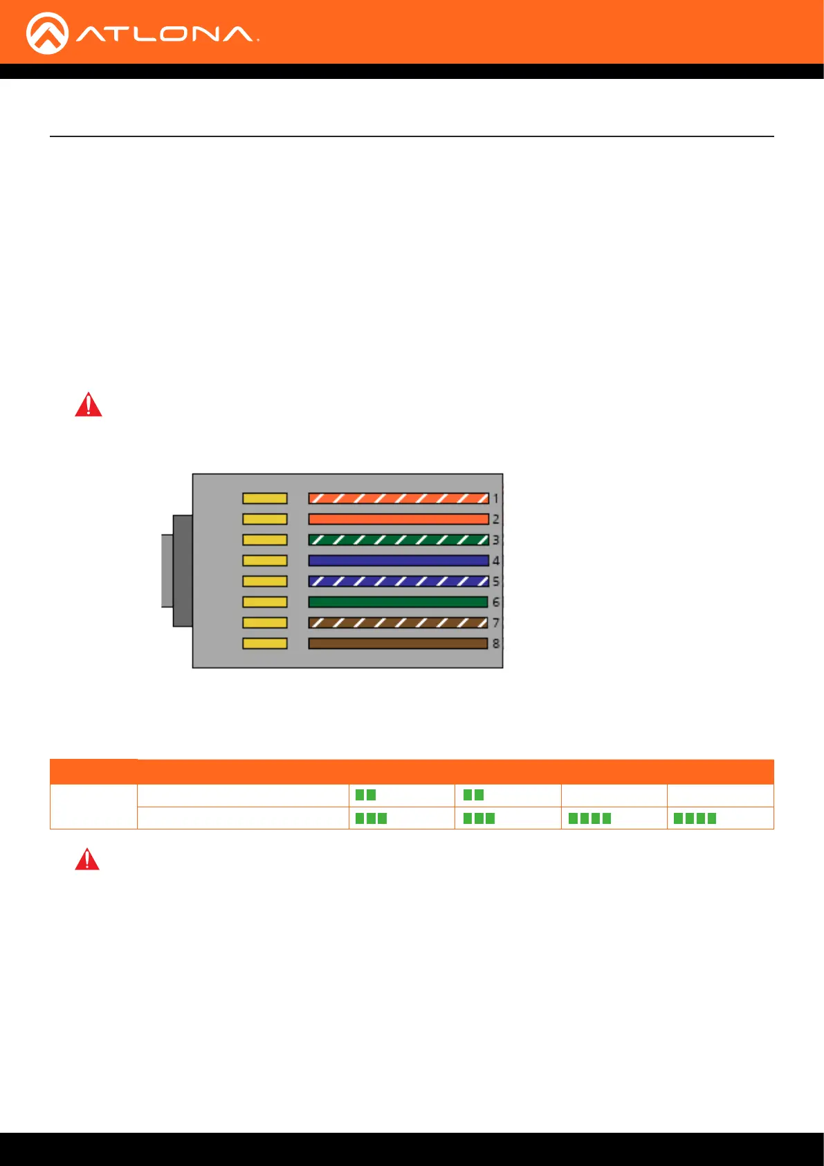 Atlona recommends EIA/TIA-568-B termination. Connector type and size is very important to ensure extenders work