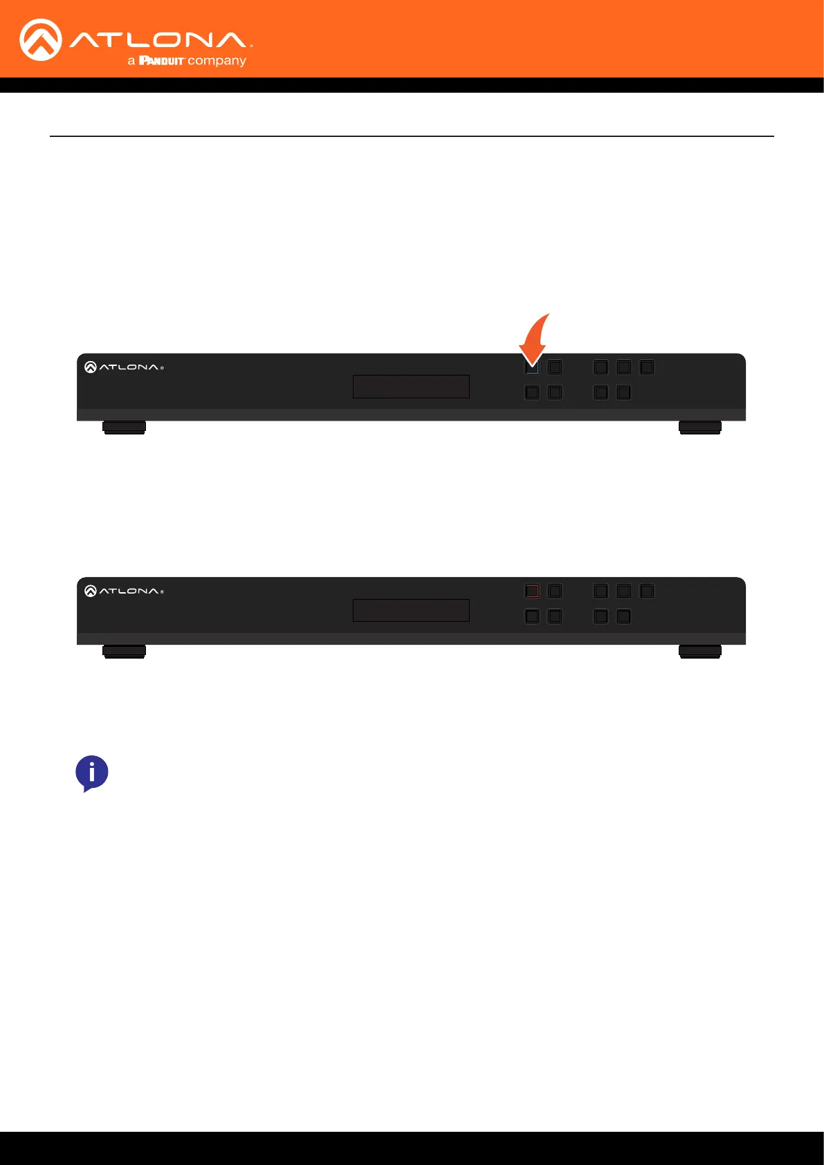 1. Locate the POWER button on the front panel. When the matrix is in normal operating mode, the POWER button