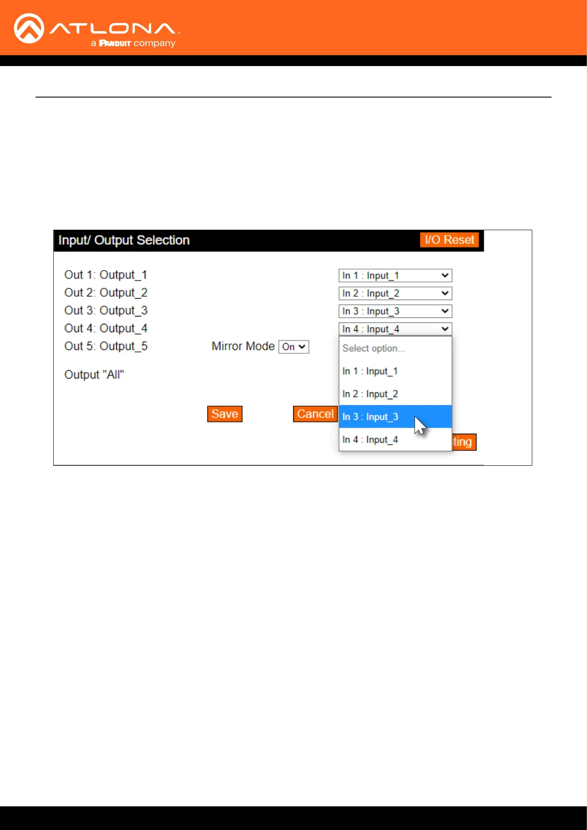 5. Click the Save button to commit changes. HDMI IN 3 is now routed to ZONE OUT 4.