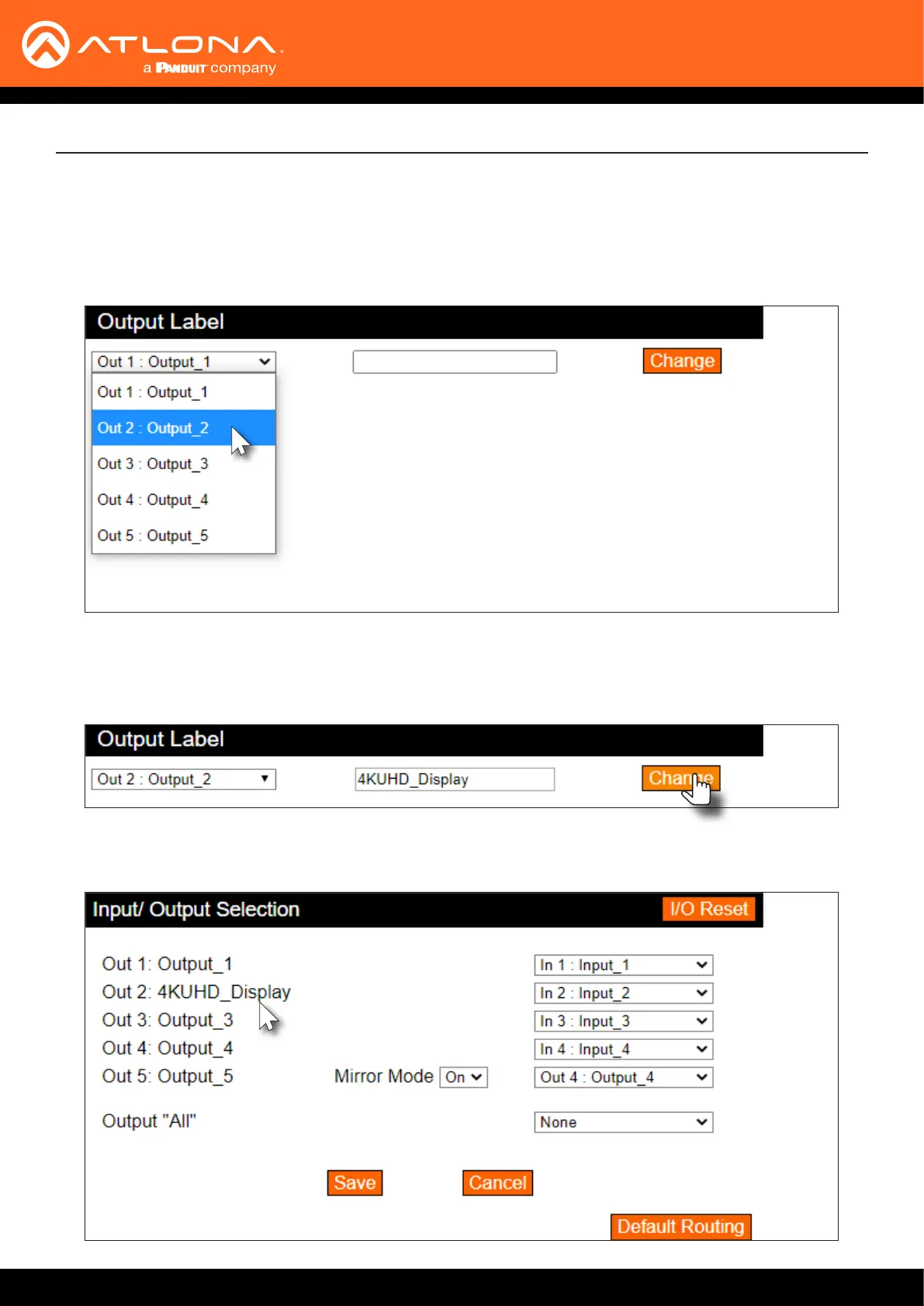 special characters are not permitted. In this example, Out 2 : Output_2 is being renamed as 4KUHD_Display.