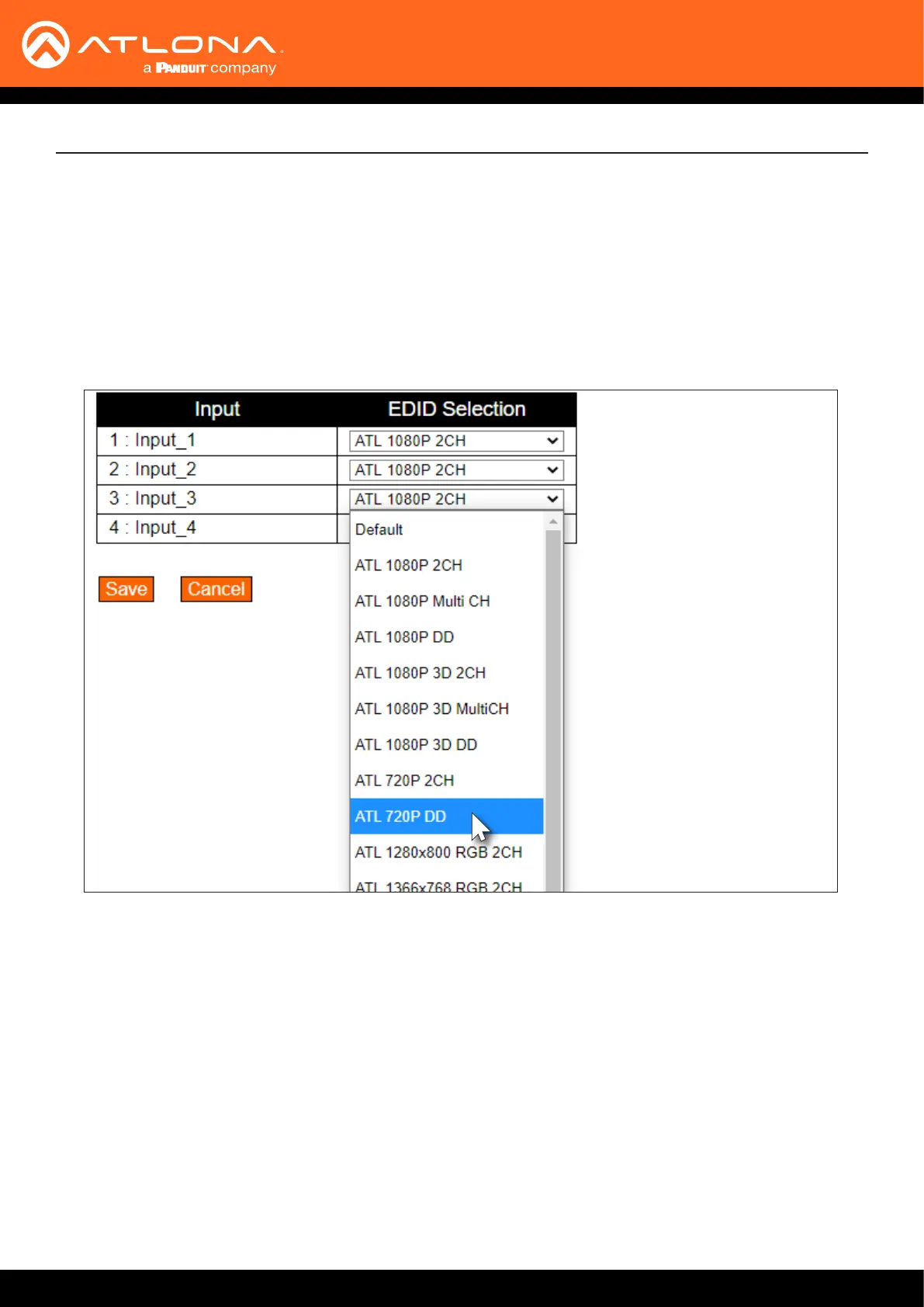 3. Click the EDID Selection drop-down list, next to the desired input, to select the EDID. In this example, the ATL