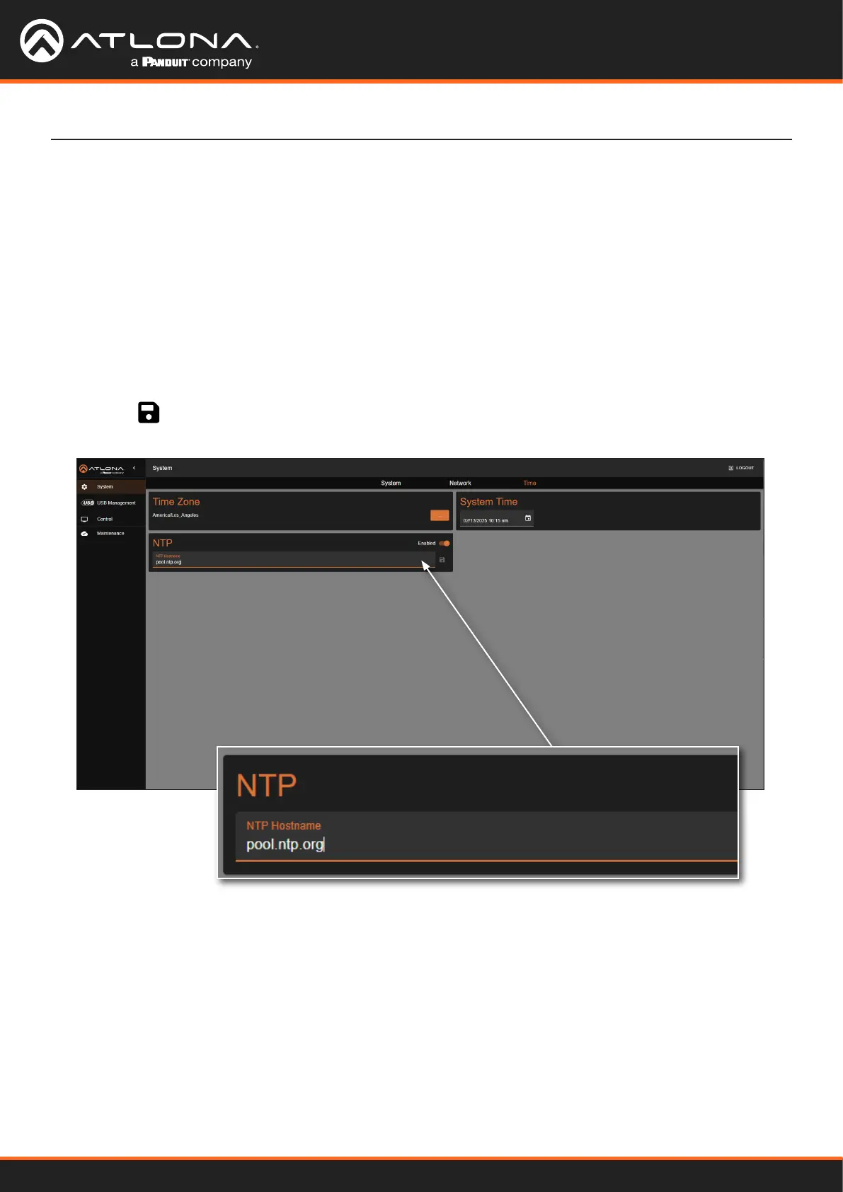 5. Click the Enabled toggle switch to enable NTP. When enabled, the toggle switch will be orange.