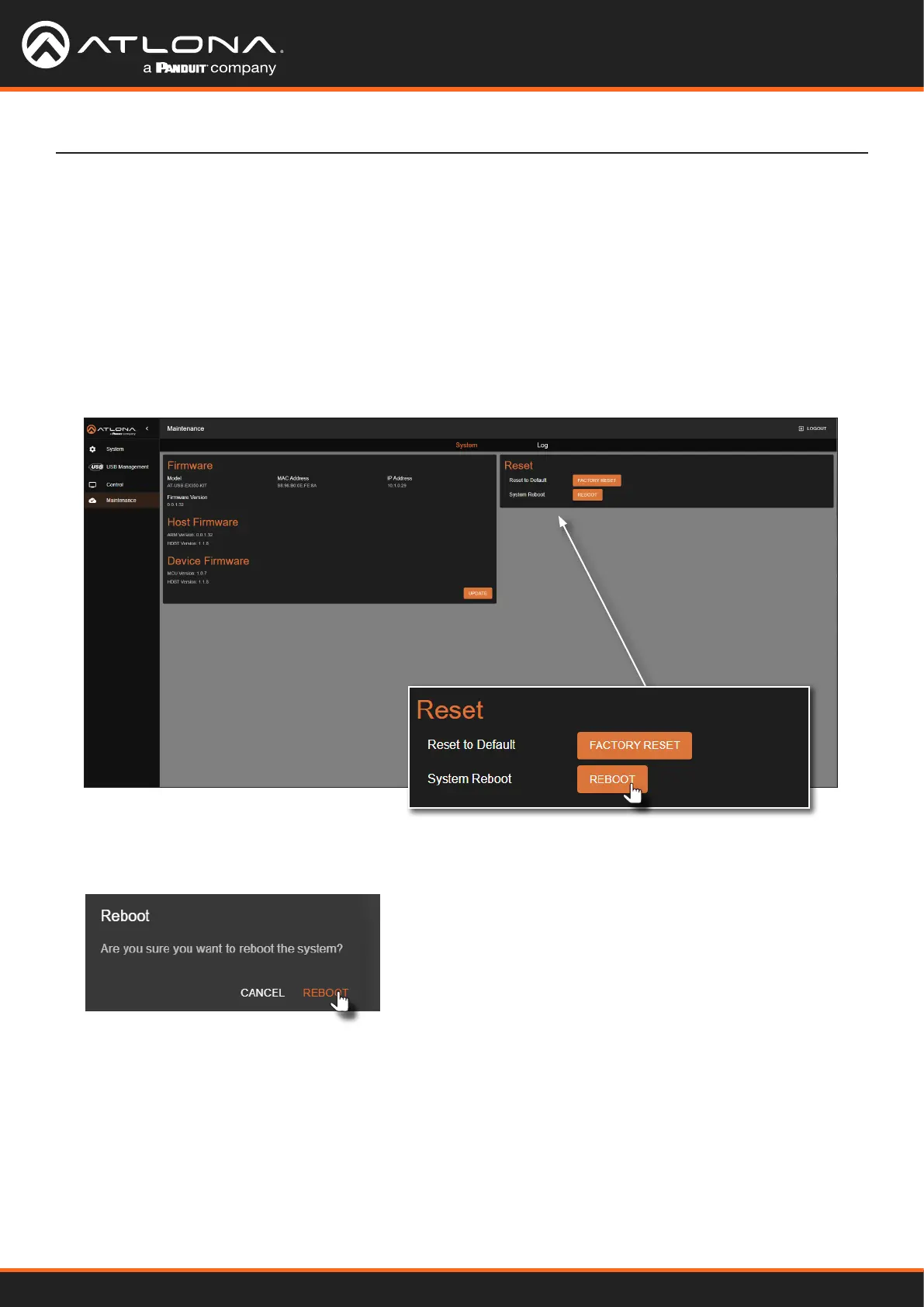 The following procedure will reboot the AT-USB-EX350-KIT. All network and other settings are preserved.